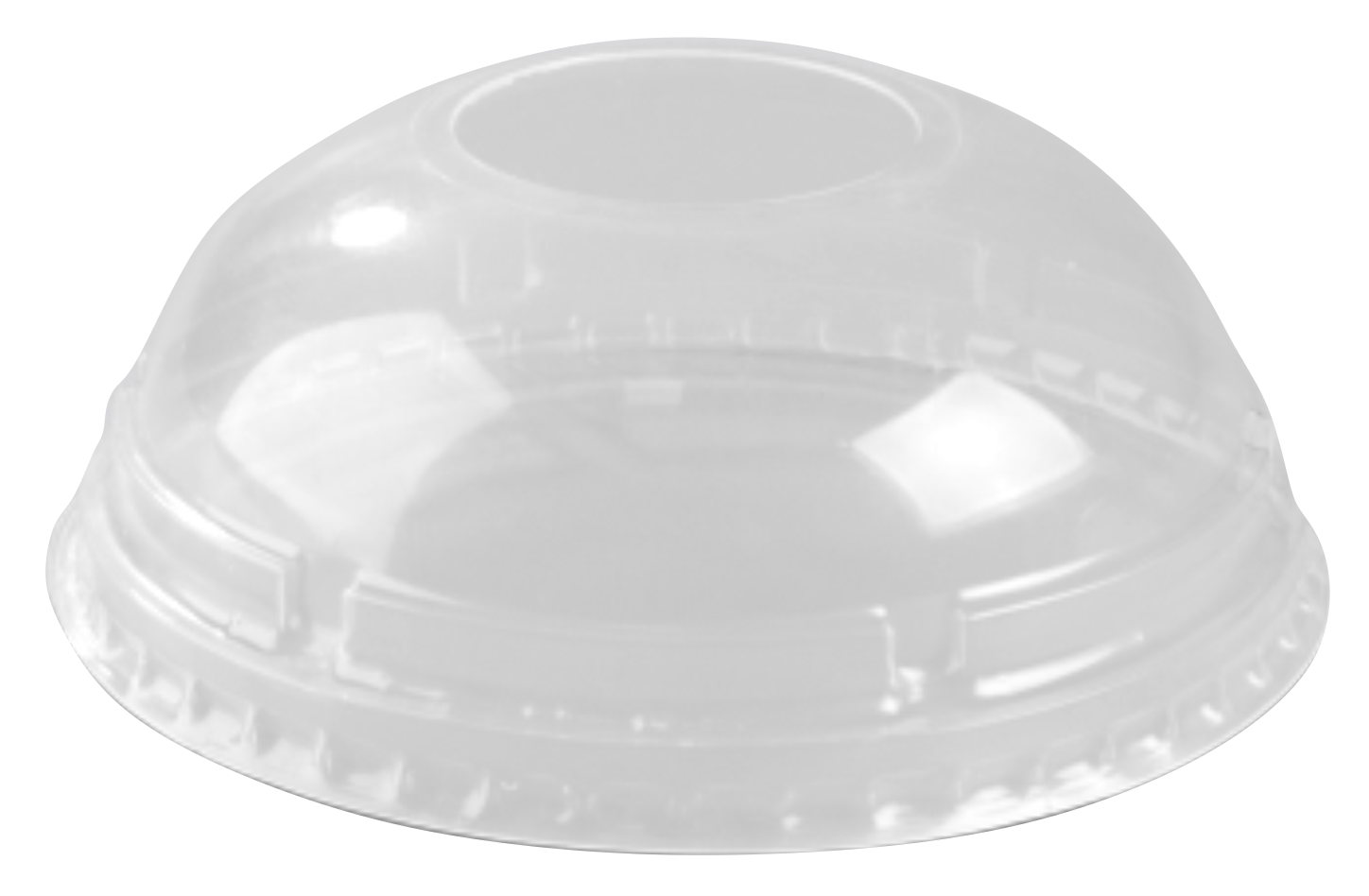 Tampas bolha COM FURO para copos plásticos descartáveis de 300/330 ml, ideais para bebidas que necessitam de canudo, como sucos, refrigerantes, sorvetes ou açaí, proporcionando praticidade para entrega delivery e evitando vazamentos.