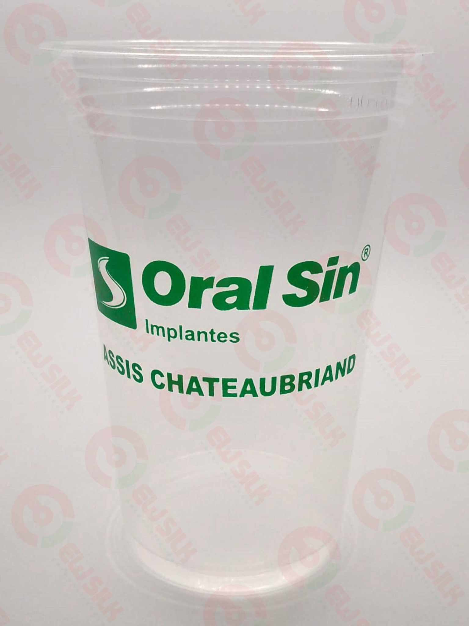 São 1000 unidades de copos descartáveis transparentes, impressão em cor única de sua escolha. Capacidade para 330 ml até o transbordo total.